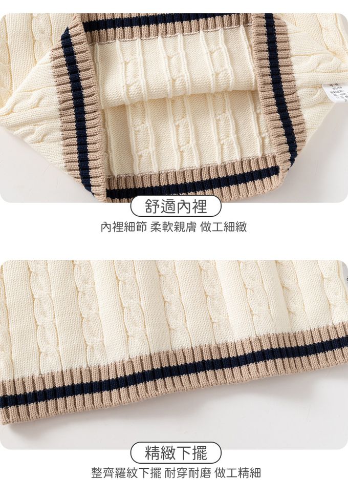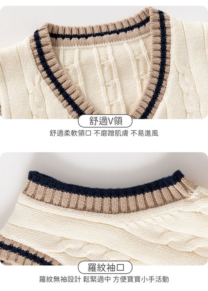 純棉V領百搭針織背心-學院風麻花-米杏色