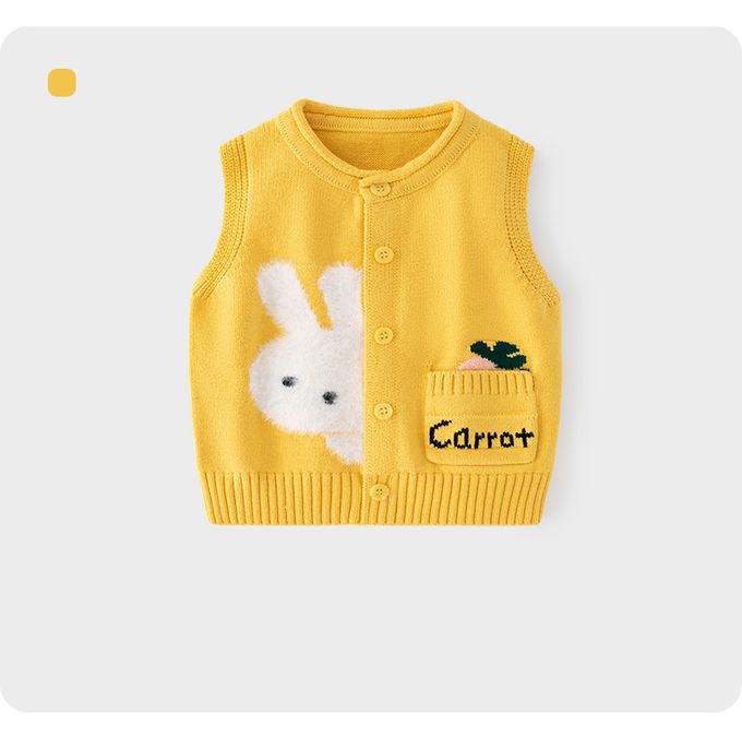 BABUYU - 舒適圓領百搭針織背心-兔兔紅蘿蔔-紅色