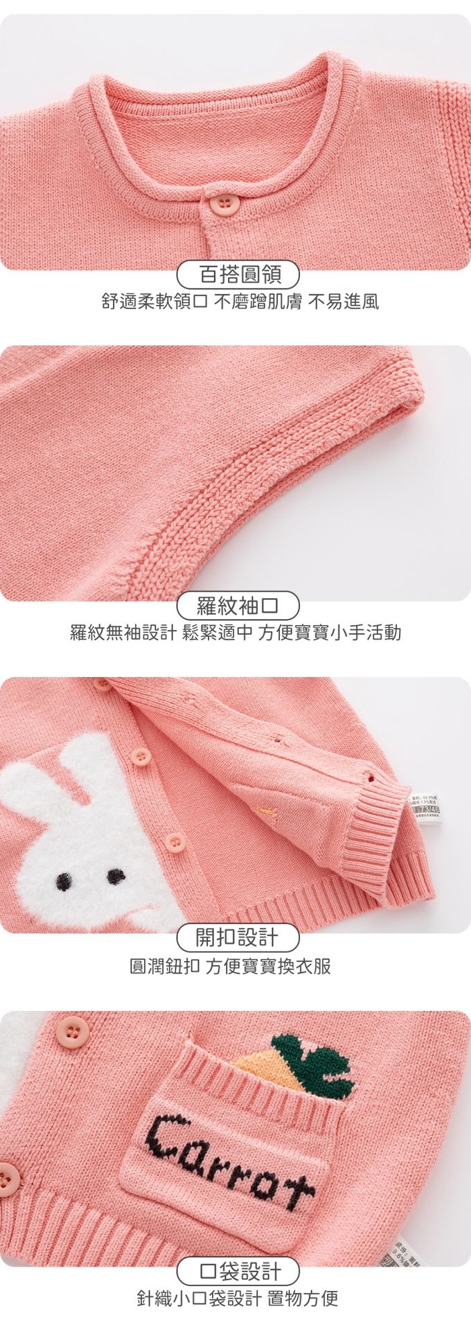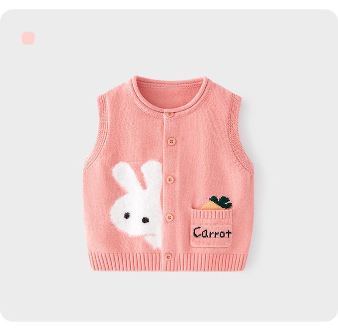 舒適圓領百搭針織背心-兔兔紅蘿蔔-粉色