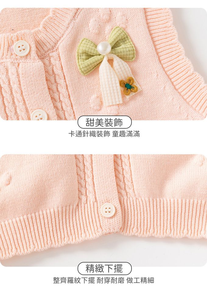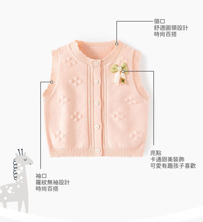 甜美花邊領百搭針織背心-提花蝴蝶結-粉色