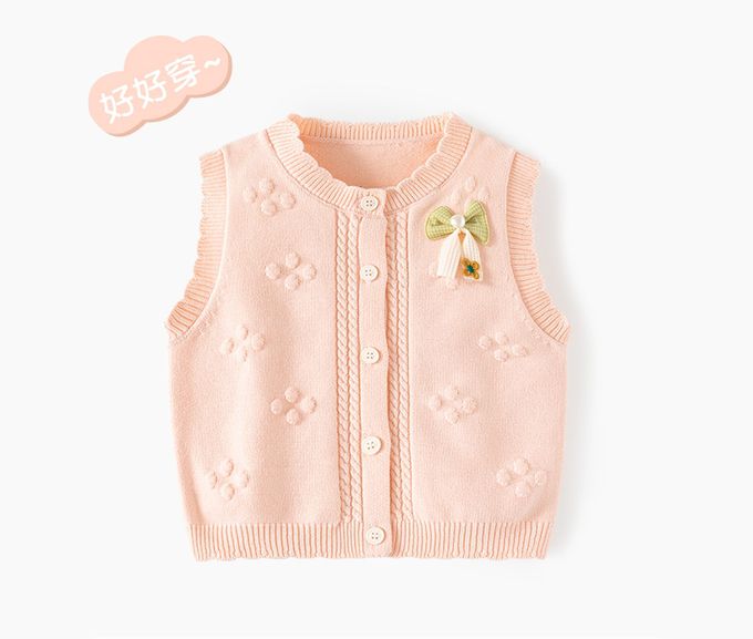 BABUYU - 甜美花邊領百搭針織背心-提花蝴蝶結-粉色