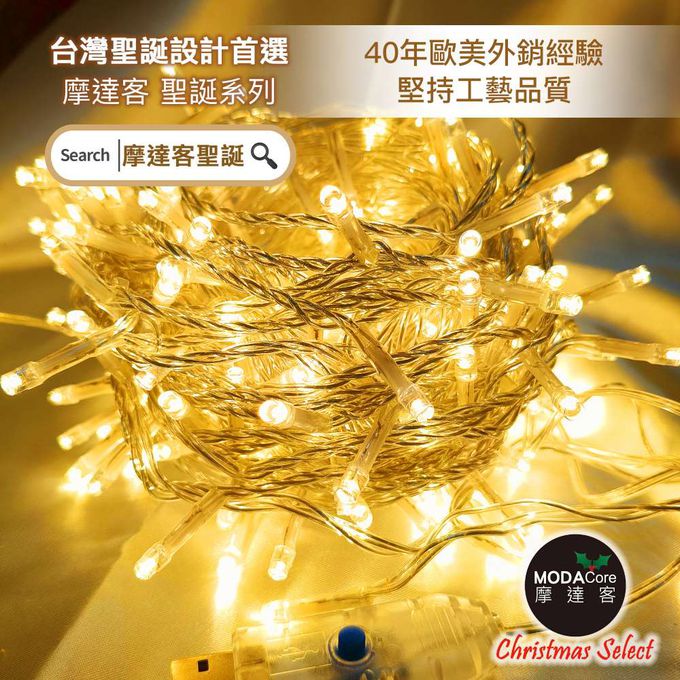 品名:浪漫療癒100燈LED高亮度透明線聖誕燈樹燈串-暖白光(USB充電接頭+控制器)