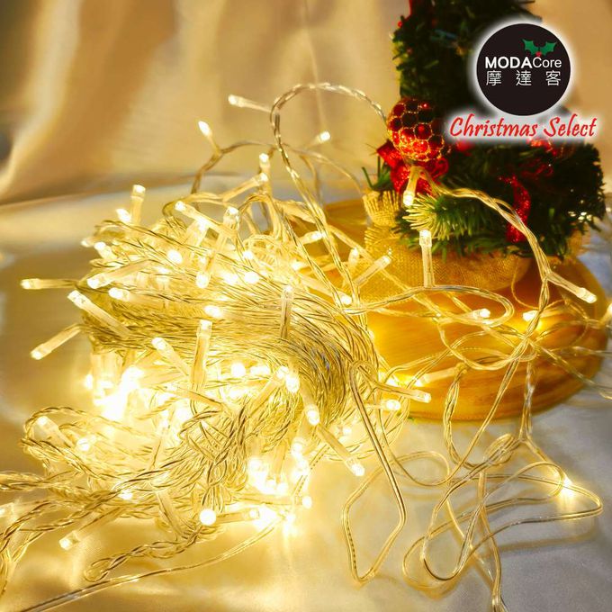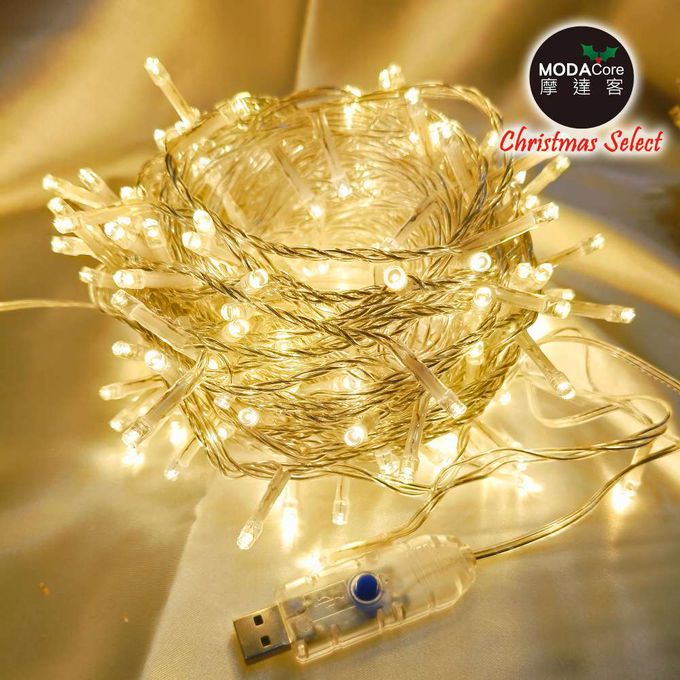 浪漫療癒100燈LED高亮度透明線聖誕燈樹燈串-暖白光(USB充電接頭+控制器)