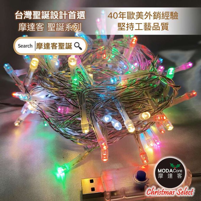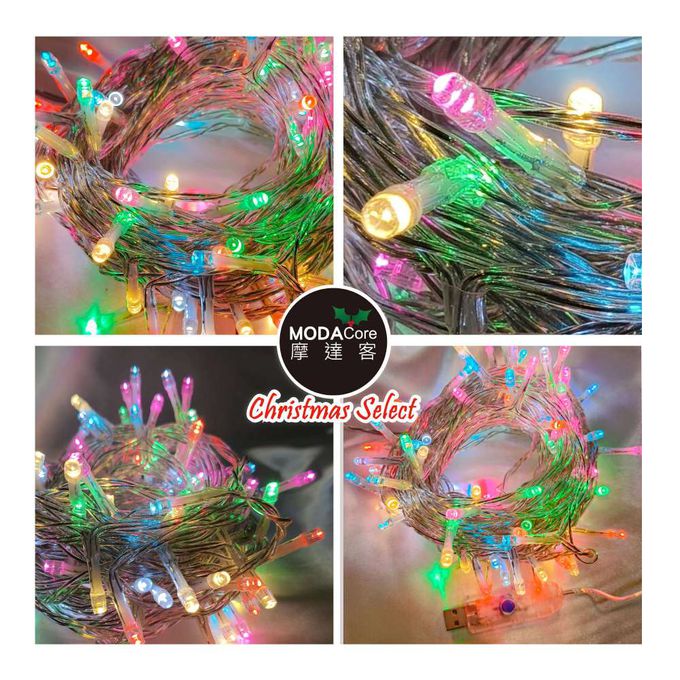 品名:浪漫療癒100燈LED高亮度透明線聖誕燈樹燈串-彩光(USB充電接頭+控制器)