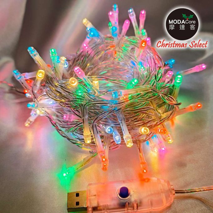 浪漫療癒100燈LED高亮度透明線聖誕燈樹燈串-彩光(USB充電接頭+控制器)