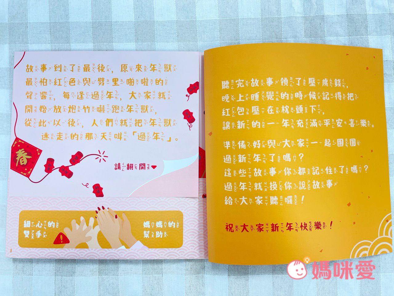 運用了不同的元素,內含豐富有趣的年節文化知識內容單元,不僅帶小朋友認識㆗國年,透過每個短篇故事逐步認識「過年我可以做什麼呢?」,也帶大朋友回到小時候的記憶,每個小故事也都有加㆖注音,讓小朋友也能學自己閱讀與認字,與孩子互動共同體驗更多的樂趣,㆒起把這個年過得生動又有趣。