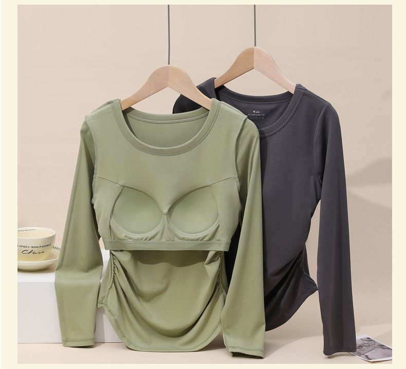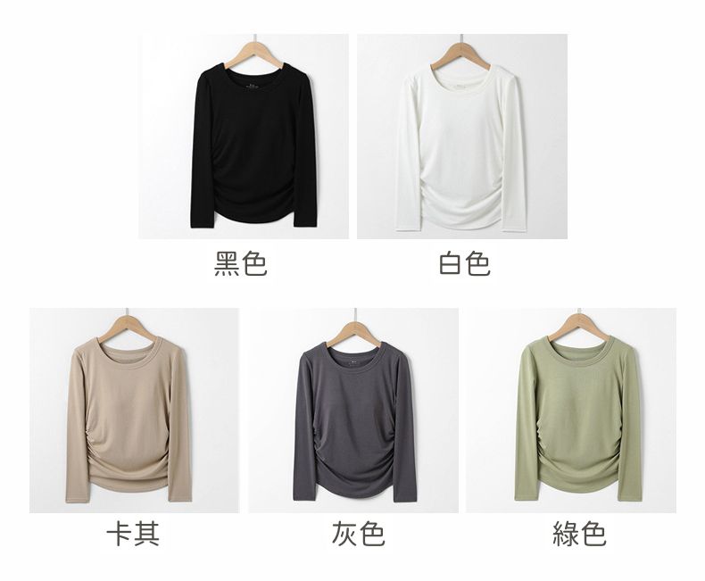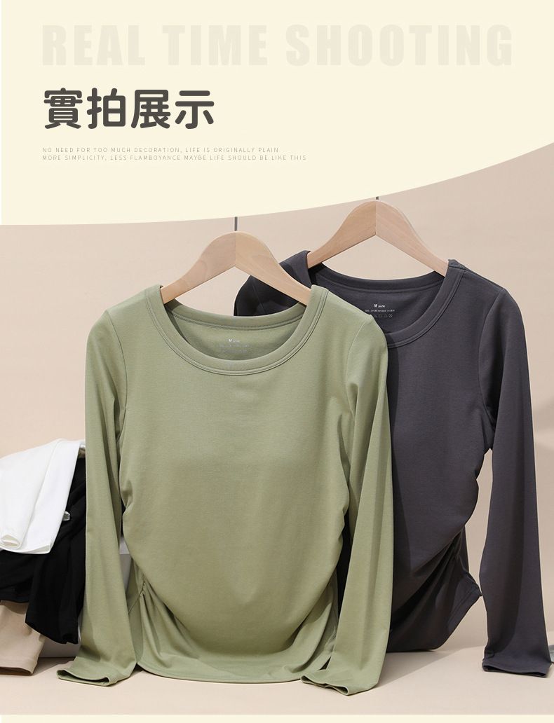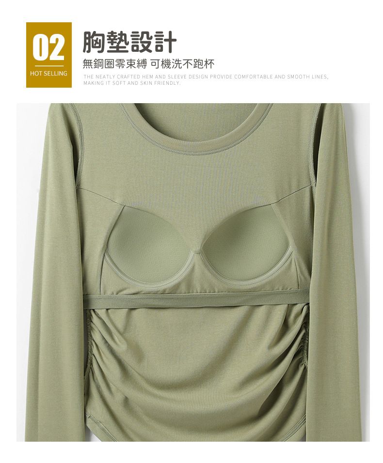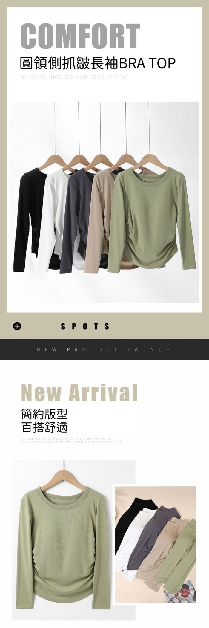 品名:圓領側抓皺長袖BRA TOP/附罩杯上衣