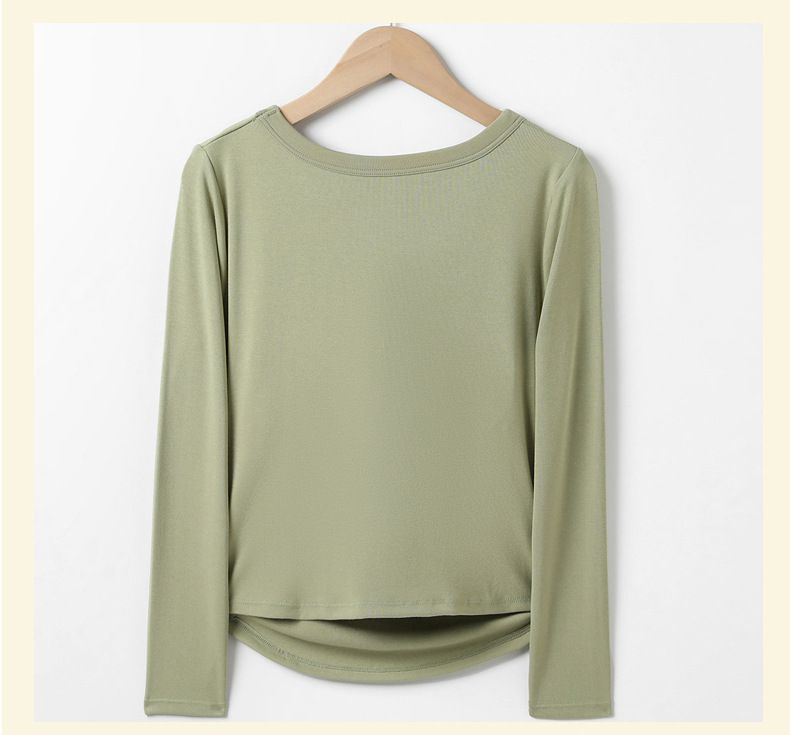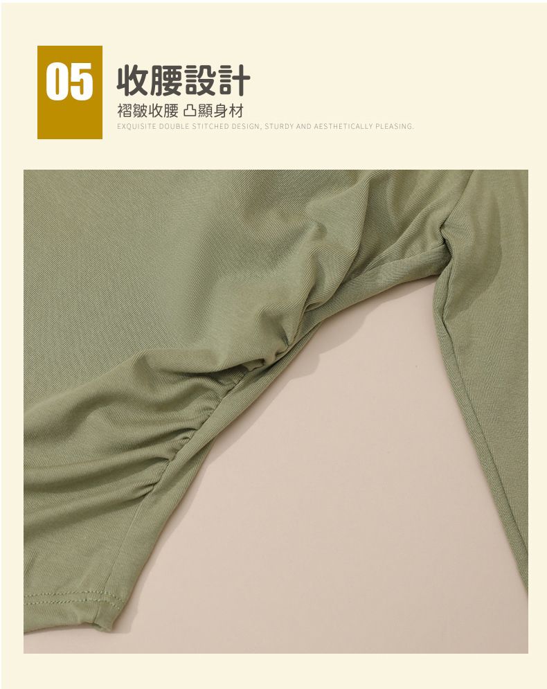 圓領側抓皺長袖BRA TOP/附罩杯上衣-綠色