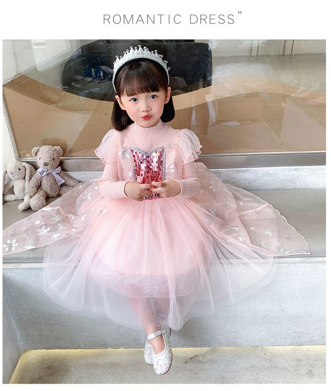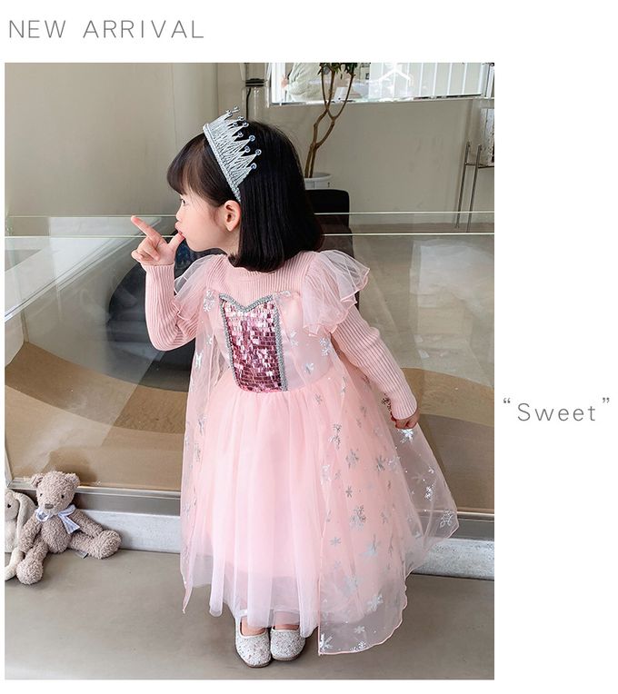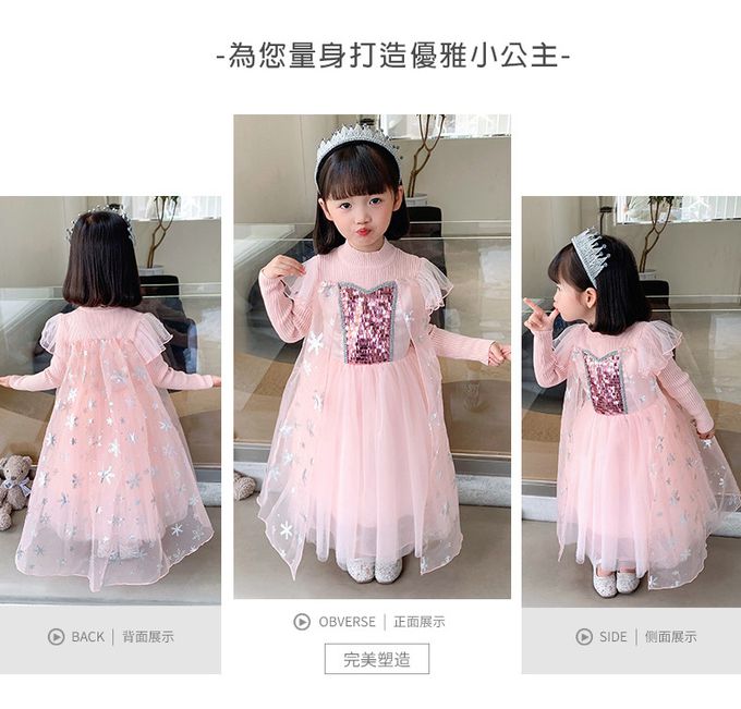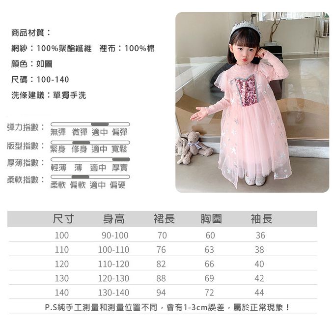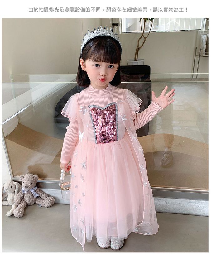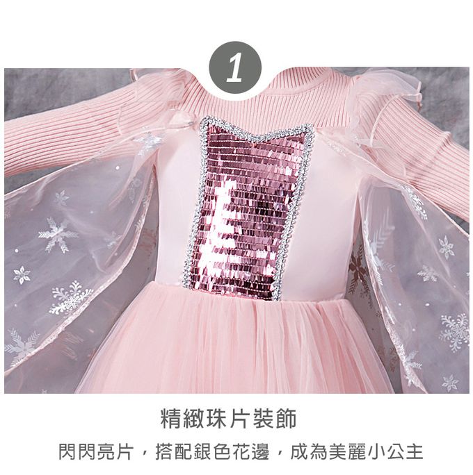 宮庭風長袖洋裝-粉色 (140(身高130-140cm,裙長94cm))