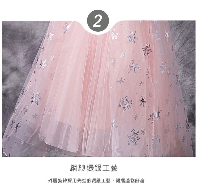 胸前閃亮亮片,以銀色花邊裝飾,細節超用心