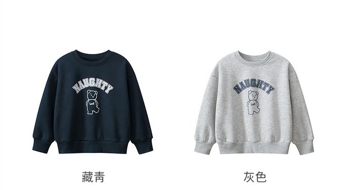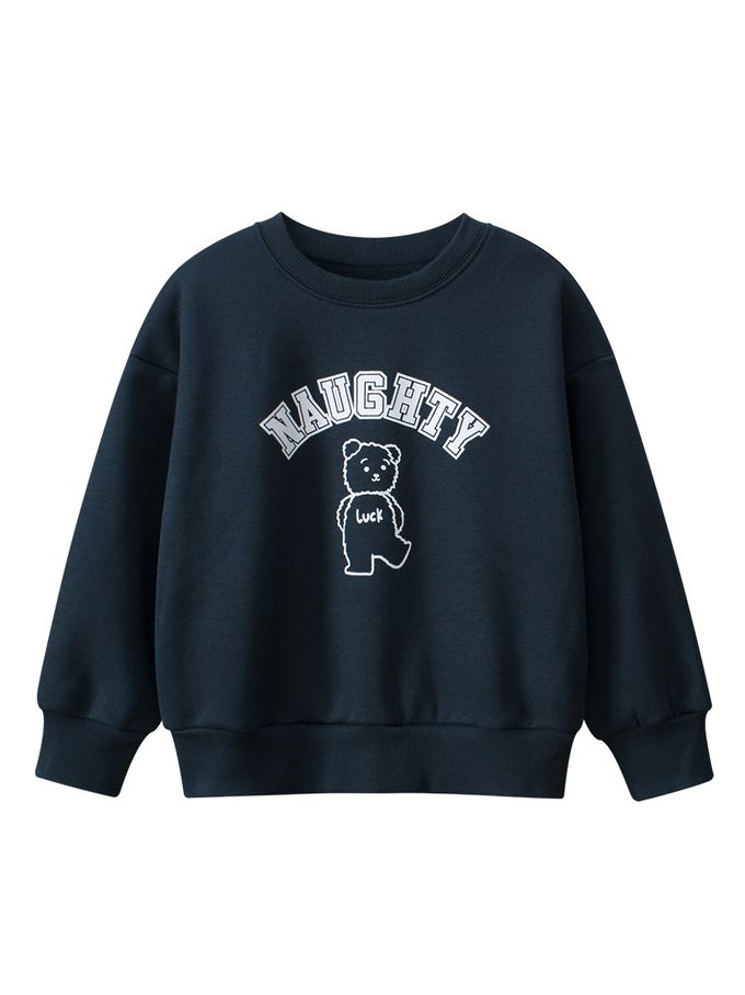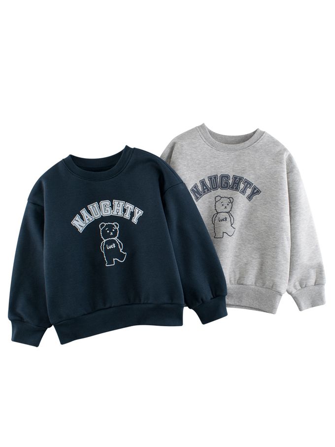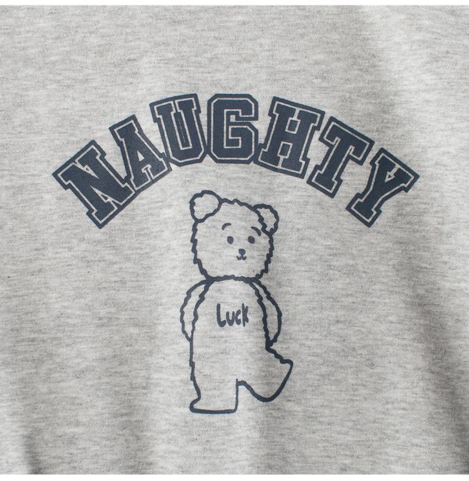 加絨棉混紡長袖上衣/大學T-NAUGHTY熊-灰色