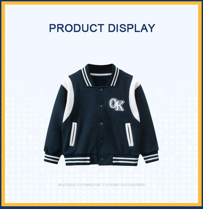 27KIDS - 加絨棉混紡棒球外套-黑色