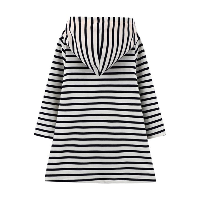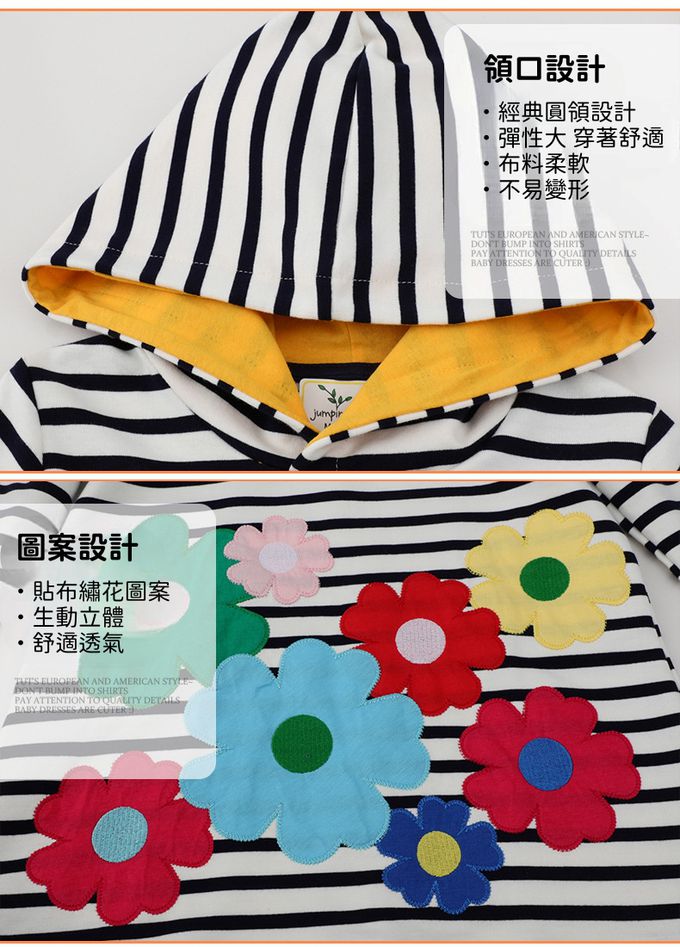 連帽棉質長袖連身大學T-繽紛花朵-黑白條紋