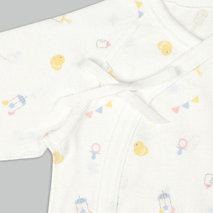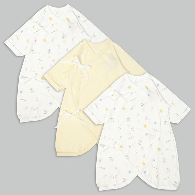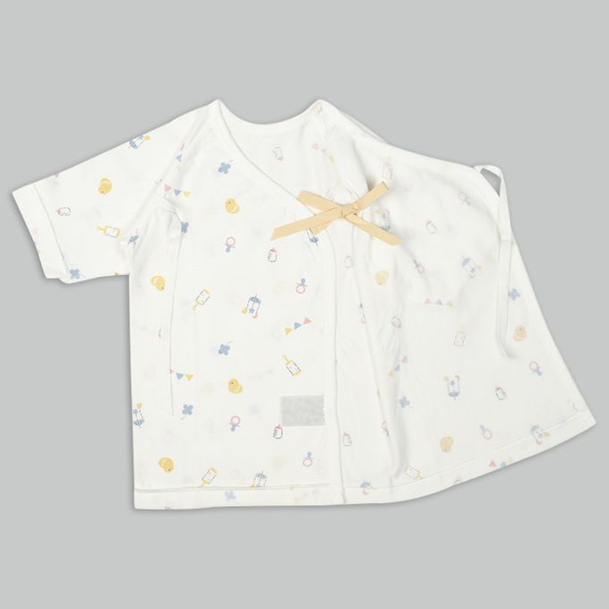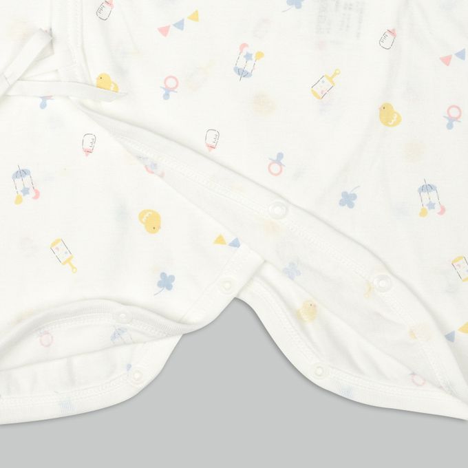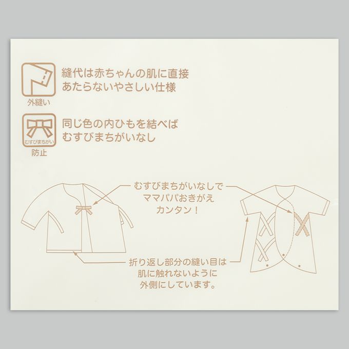 肚衣不只能保溫,還能吸收脖子周圍和腋下的汗水,讓身體保持清潔。是一年四季都可穿的必需品。蝴蝶裝與穿肚衣一起穿著時,只要扣上內側的釦子,即使小寶寶活力充沛地揮動手腳,褲腳也不容易敞開。