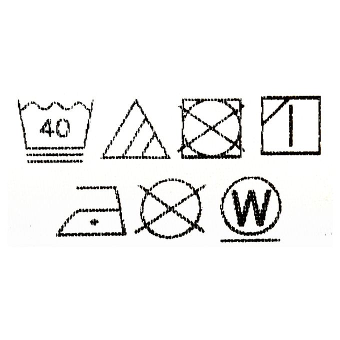 注意事項:●標示內容遵照台灣法規之規定。●請使用不含螢光增白劑的洗劑。●熨燙請使用墊布。●請勿熨燙釦子部分。