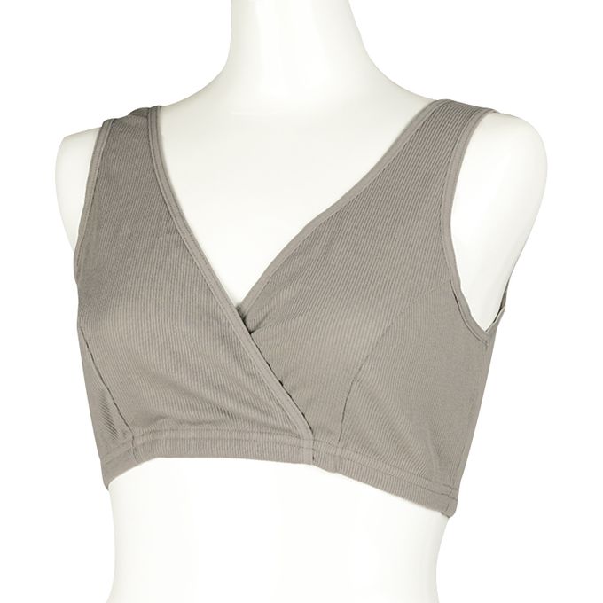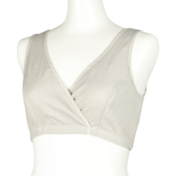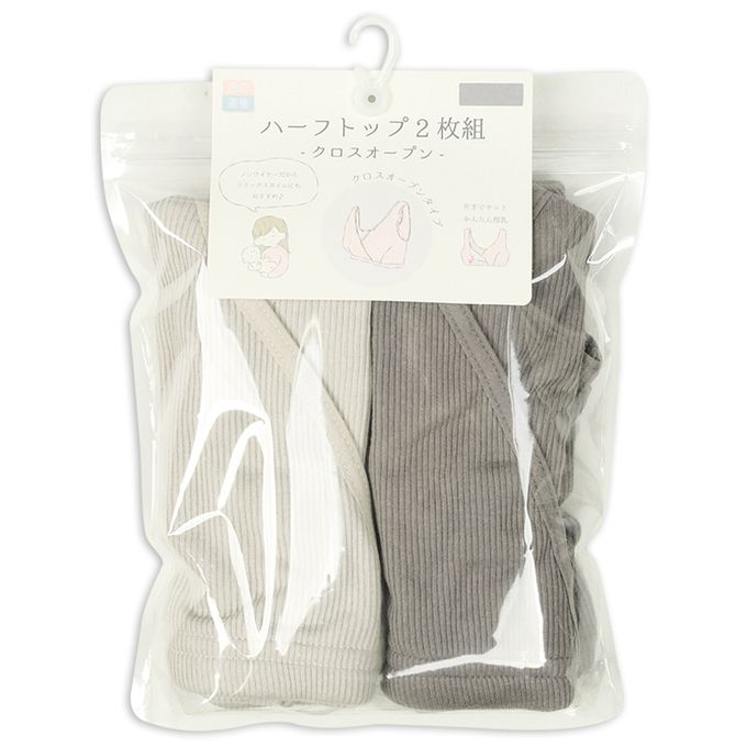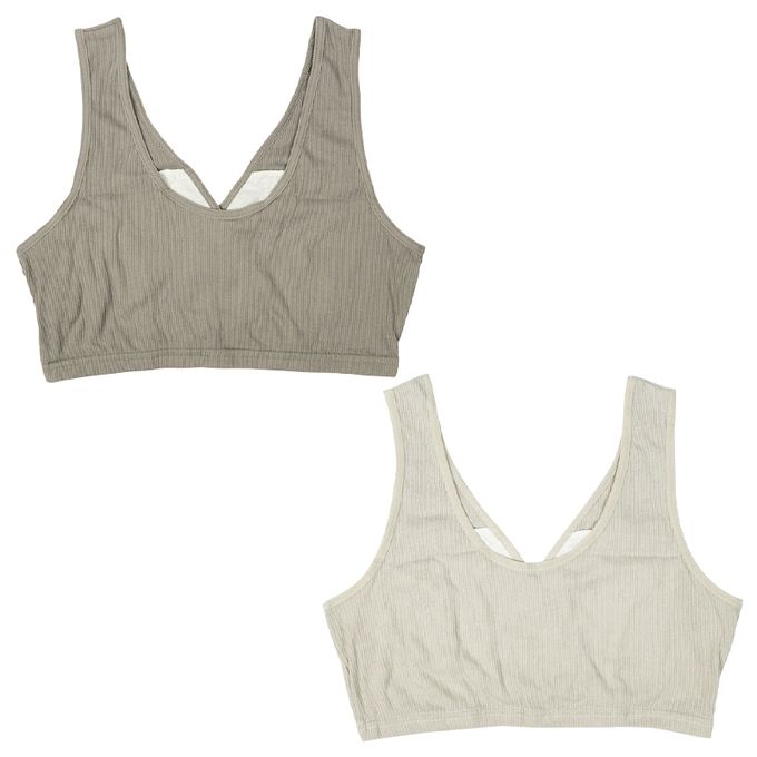 羅紋半截式內衣2件組-胸前交叉款-淺卡其色