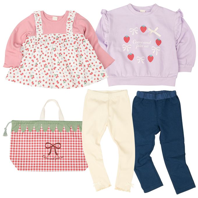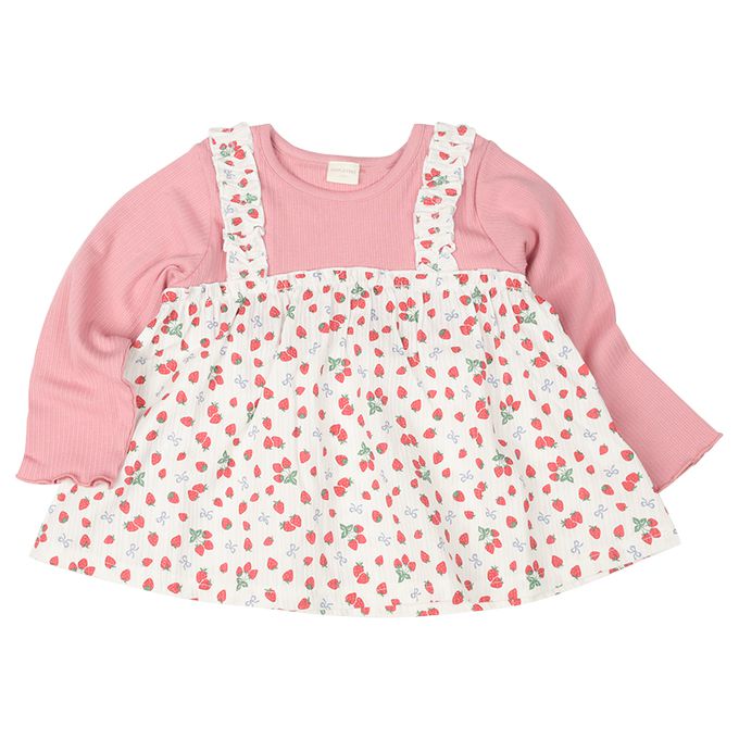 T恤為假兩件式設計,搭配可愛的草莓圖案。