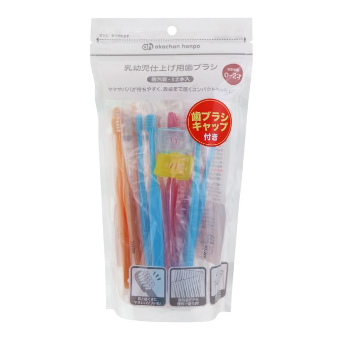 12支入(獨立包裝)・牙刷蓋2個、即使是嘴巴張不大的幼童也能輕鬆碰到臼齒的刷頭設計。