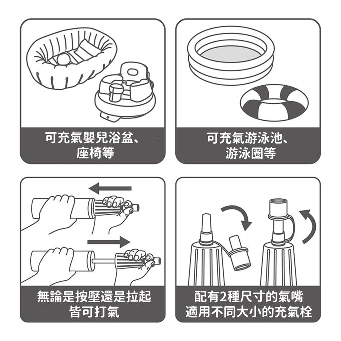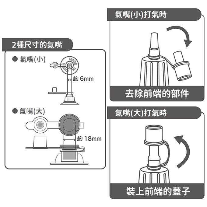 ●適用的充氣栓尺寸(約・ cm):充氣栓(小)0.6、 充氣栓(大)1.8