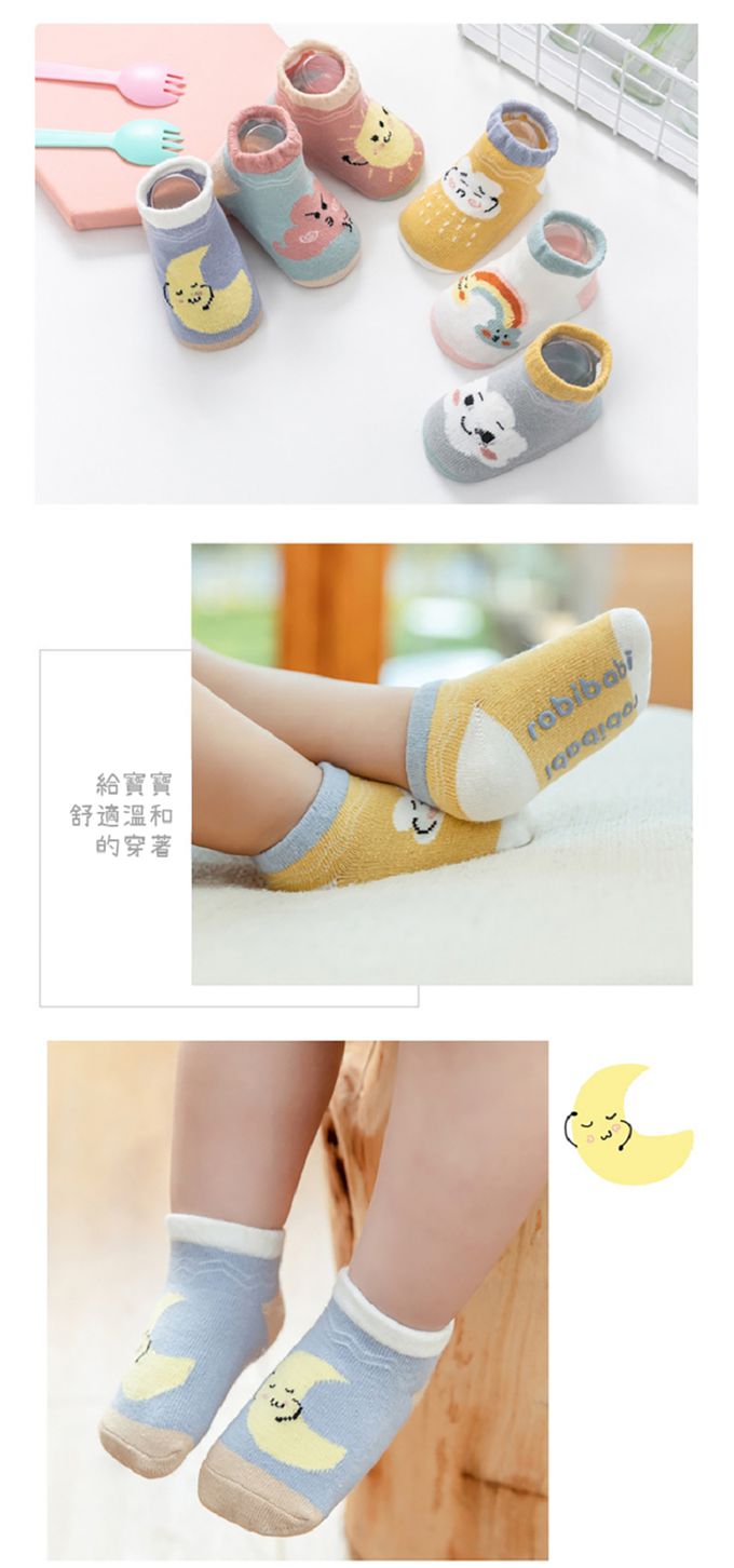 雲朵天氣船襪 短襪(底部止滑)-3雙入-藍色月亮+隨機2雙
