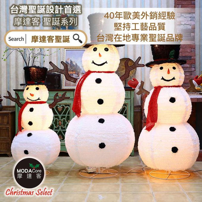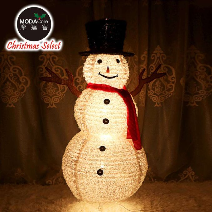 品名:(預購)摩達客聖誕-大型LED燈白色絨毛彈簧摺疊雪人玩偶擺飾(100燈LED燈暖白光USB充電)
