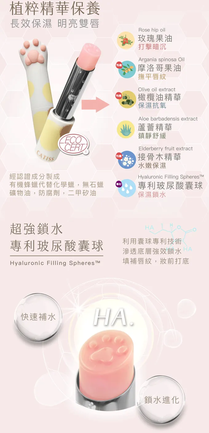 植粹精華保養級內料,撫平唇紋舒緩乾裂