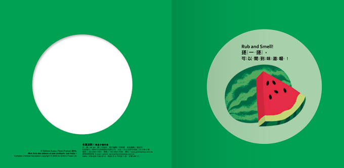 「味道書系列」是法國知名出版社Auzou專為幼兒設計的感官遊戲繪本,以可愛插圖認識各種情境字彙,搭配有趣的搓聞設計,讓孩子實際動動手指、嗅嗅味道,開啟各個感官知能,促進大腦學習與發展。格林文化已出版暢銷系列作《什麼這麼香?用鼻子看的書》與《哪裡有怪味?用鼻子看的書》。