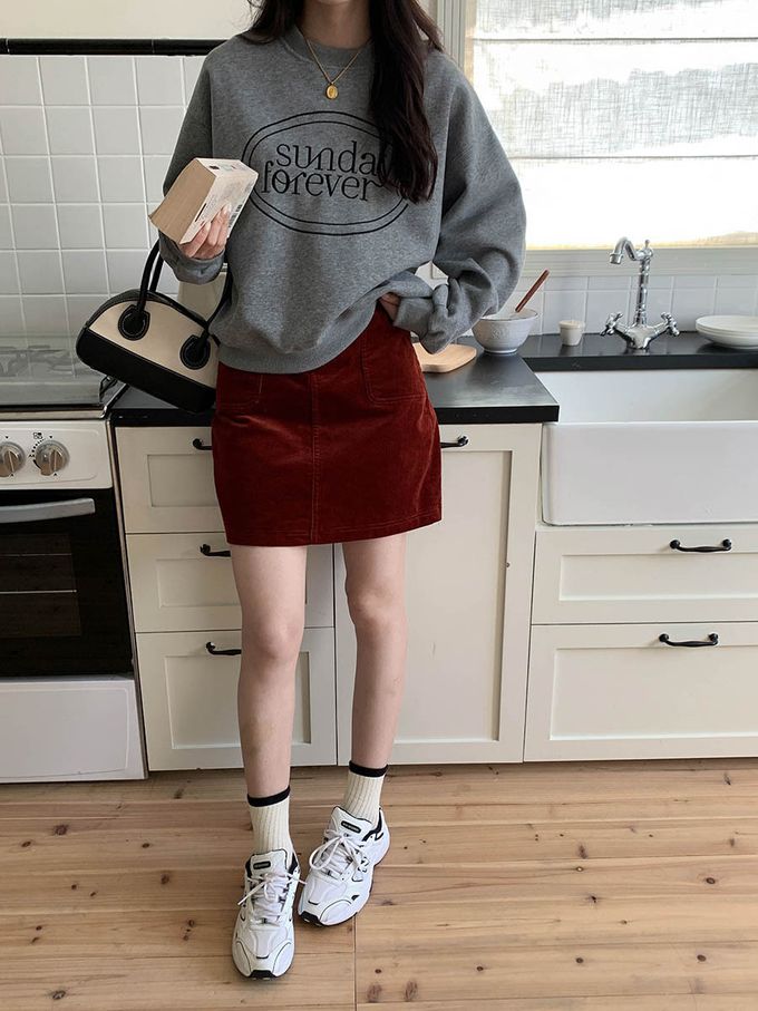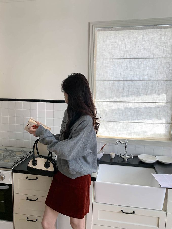 3th Morning - 圓領長袖上衣/大學T-sunday forever-灰色 (F)