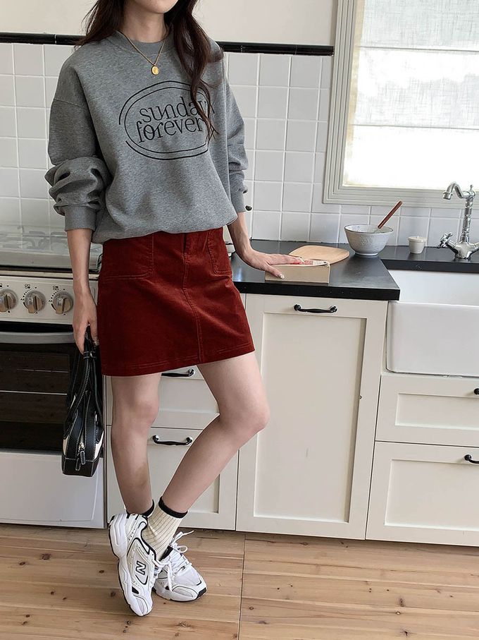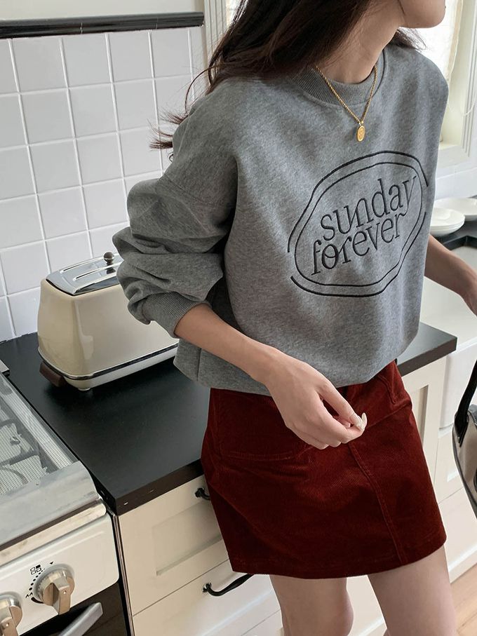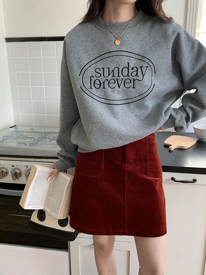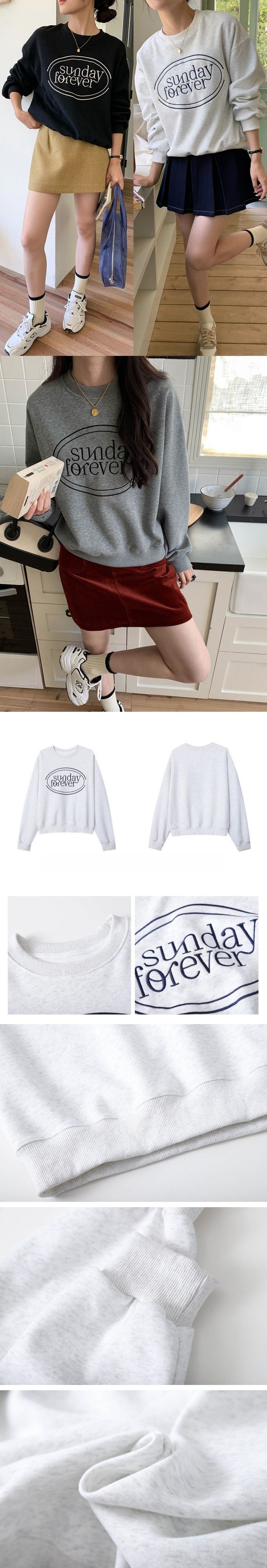 圓領長袖上衣/大學T-sunday forever-灰色 (F)