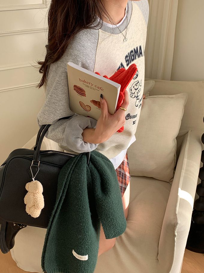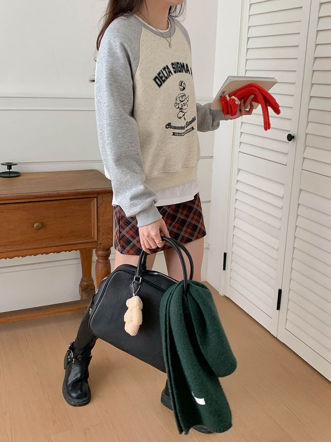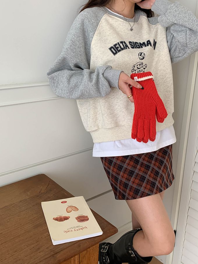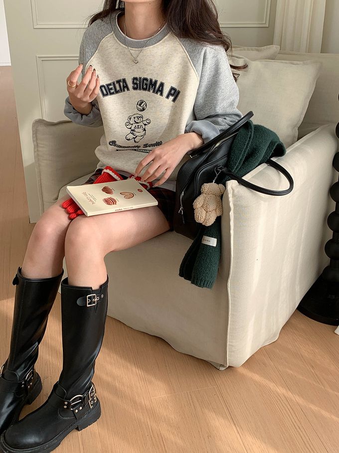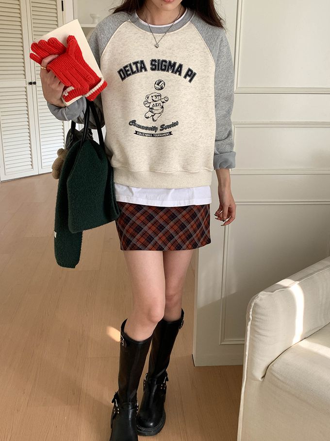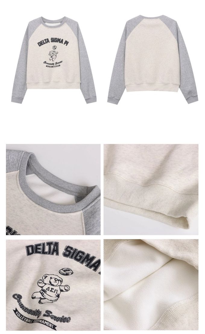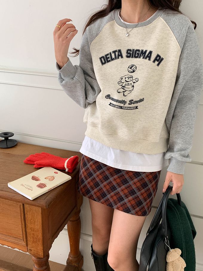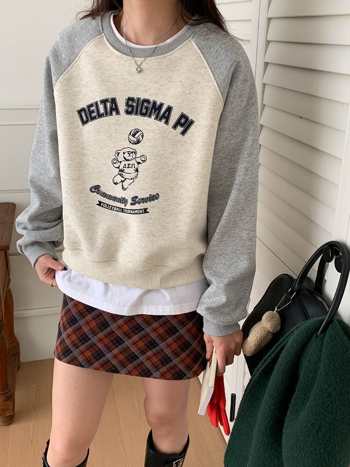 加絨款圓領長袖上衣/大學T-熊熊打排球-麻灰色 (F)