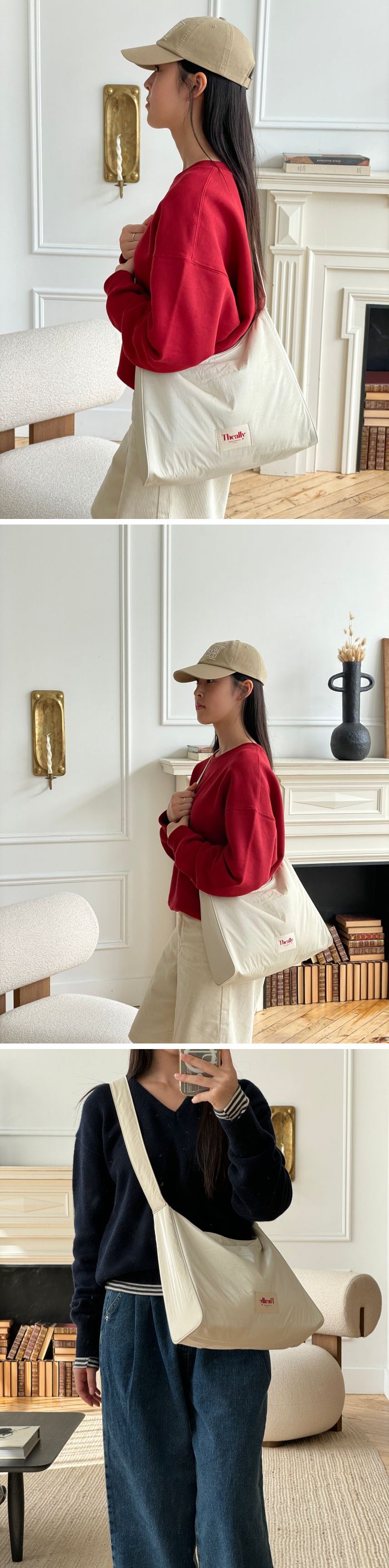 韓國 THEALLY - (附小袋)光澤感輕量肩背包/斜背包-象牙白
