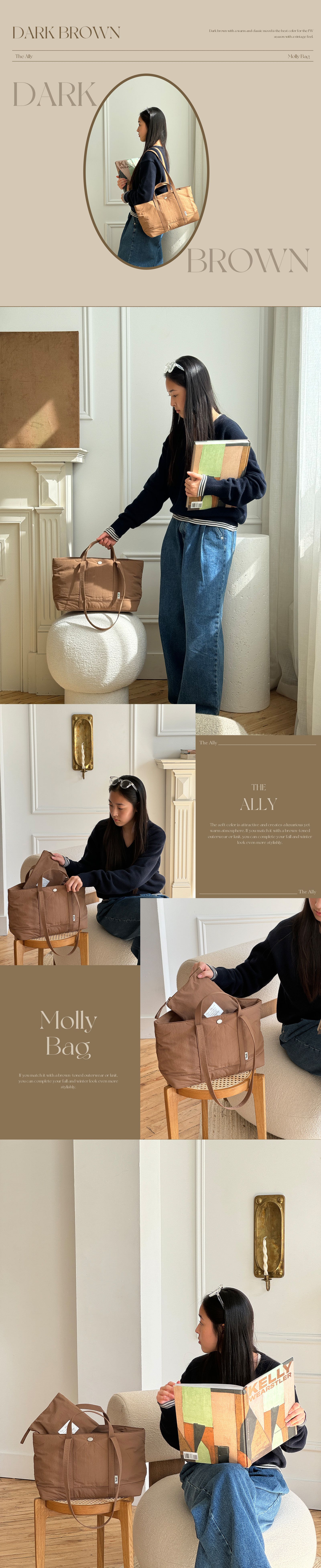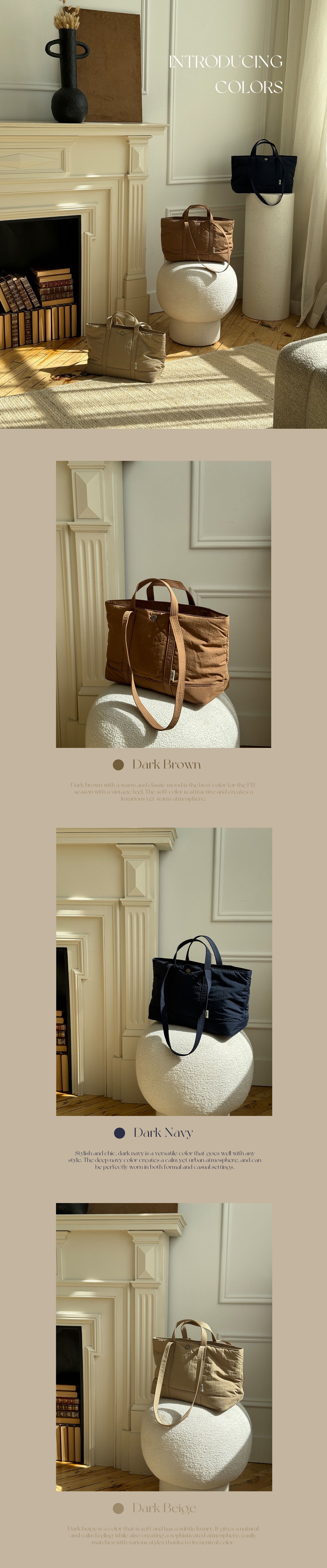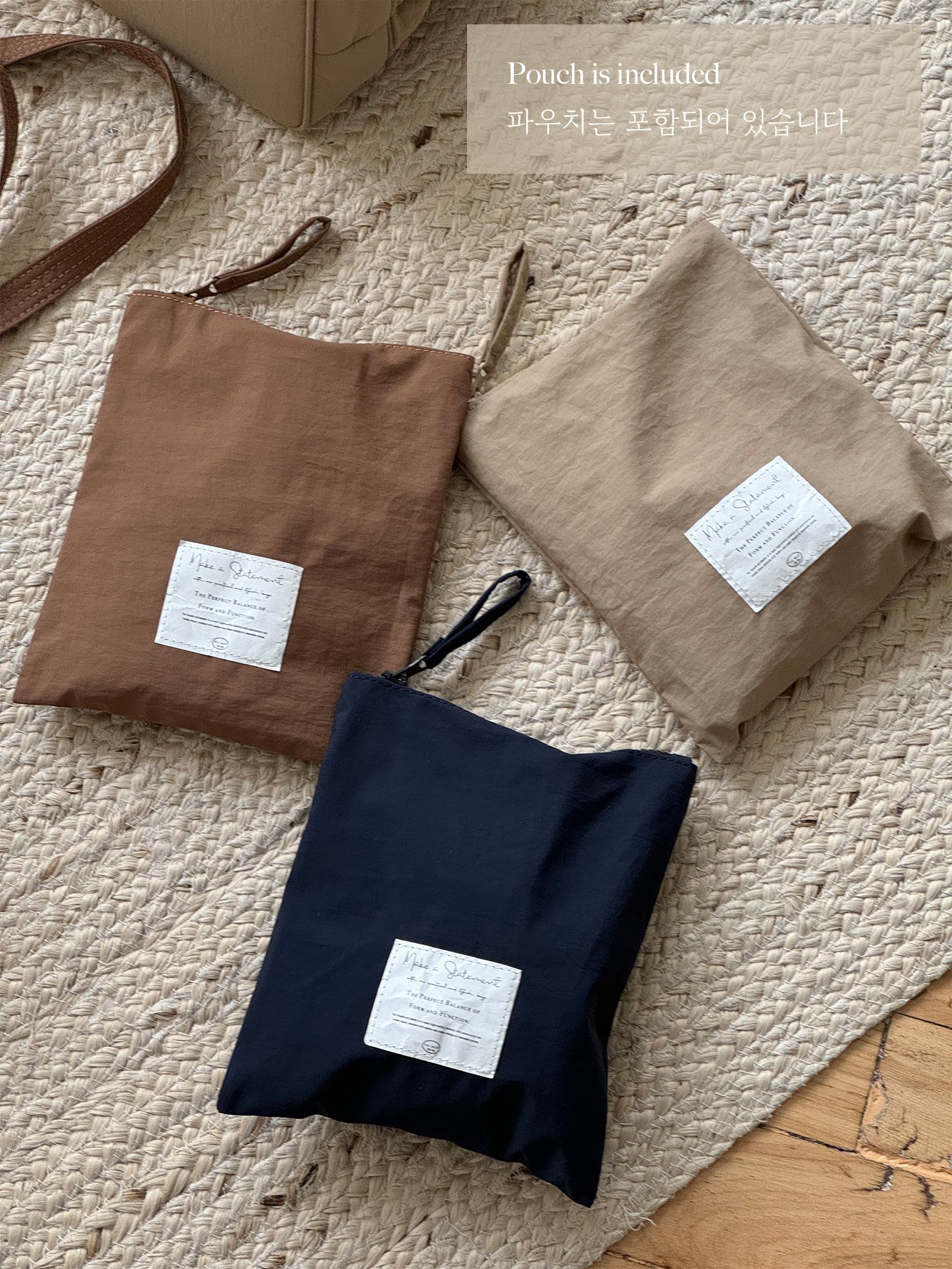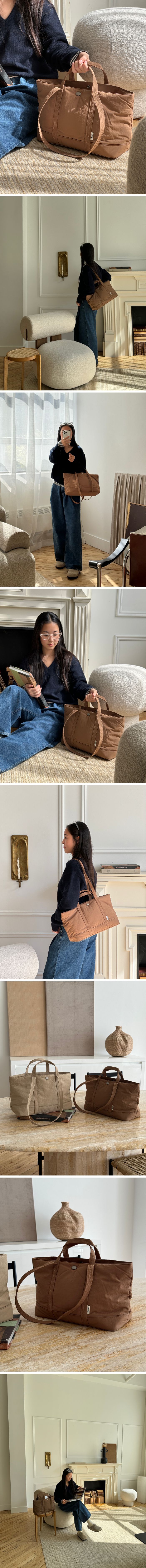 韓國 THEALLY - 小眾設計 (附小拉鍊包)尼龍輕量手提/肩背包-巧克力咖