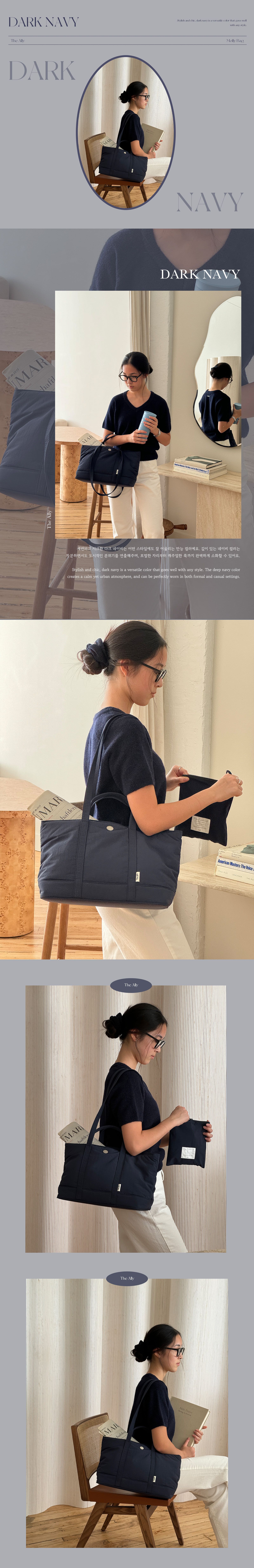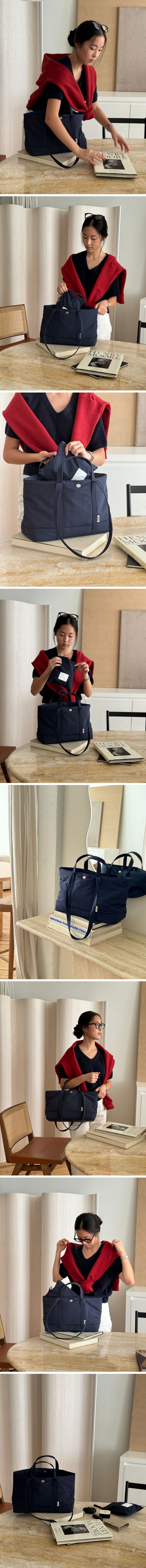 韓國 THEALLY - 小眾設計 (附小拉鍊包)尼龍輕量手提/肩背包-海軍藍