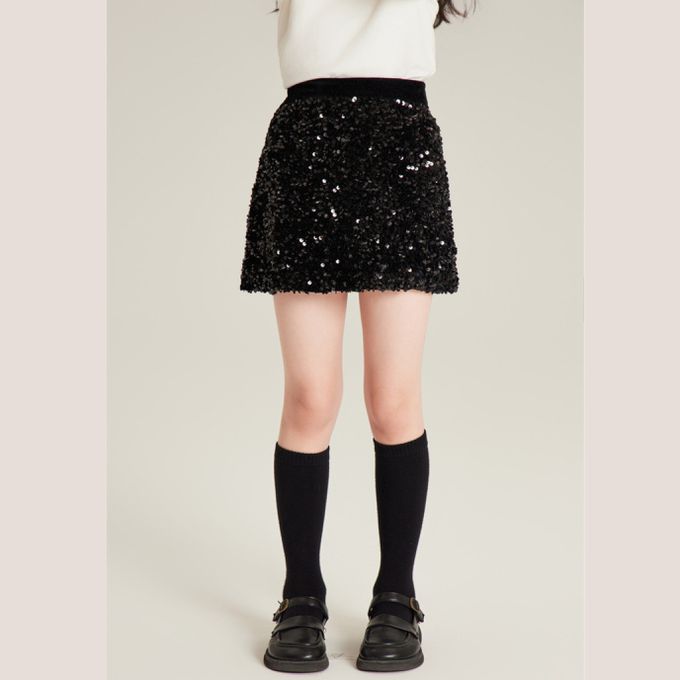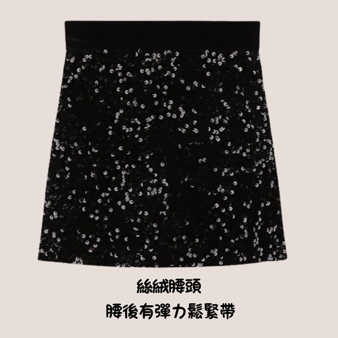 絲絨亮片短裙 後腰鬆緊帶 舒適穿著