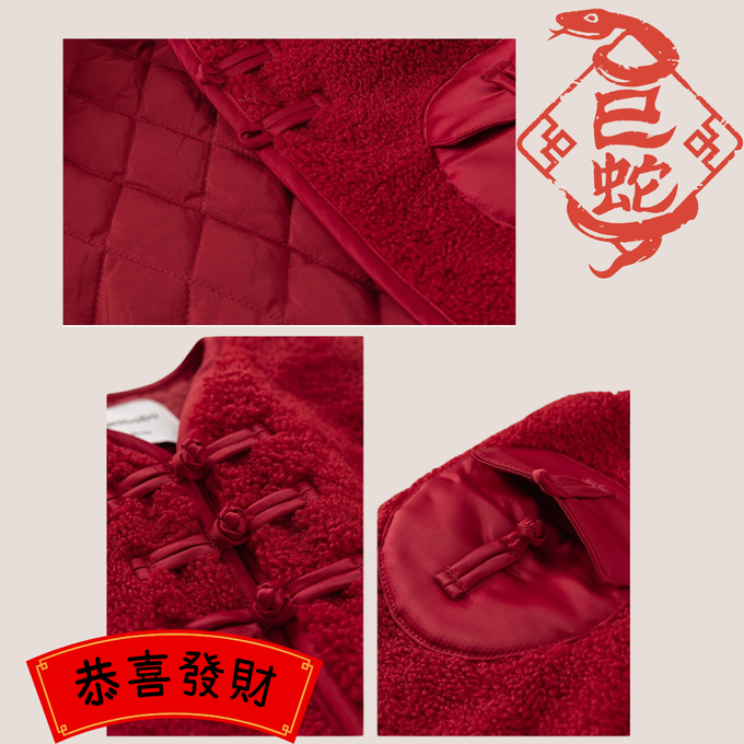 品名:過年拜年喜氣羔羊絨絎縫棉盤扣保暖背心