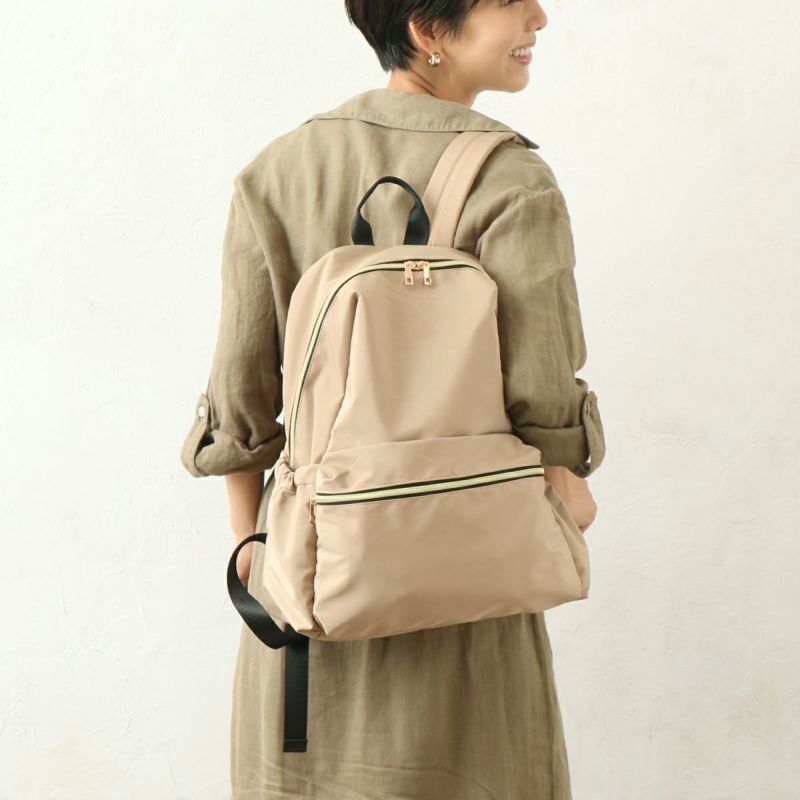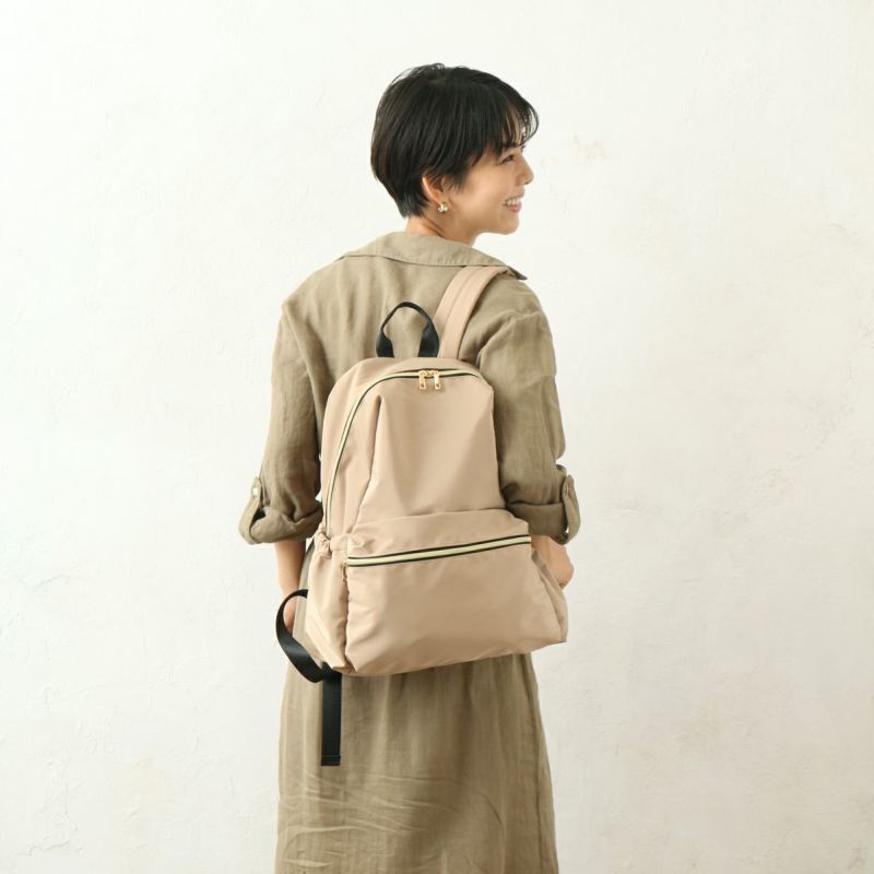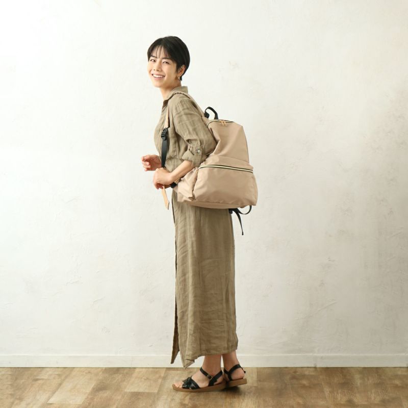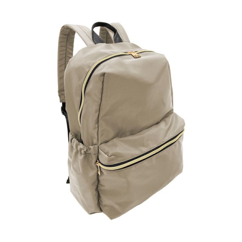 日本 polkapolka - 人氣款!10口袋大容量金釦後背包-卡其