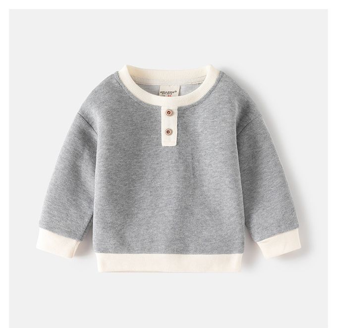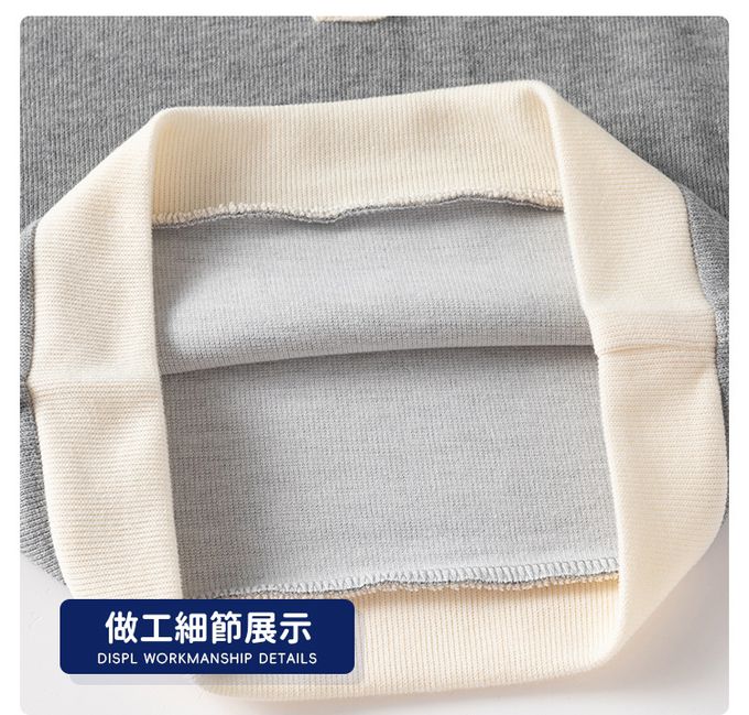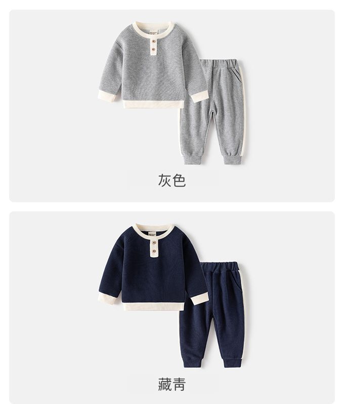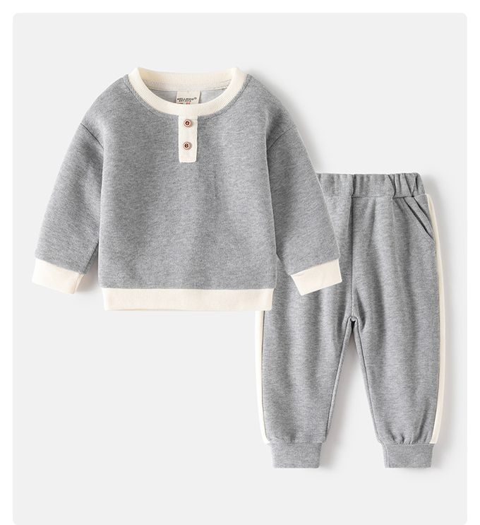 圓領長袖大學T套裝-撞色鈕扣-灰色