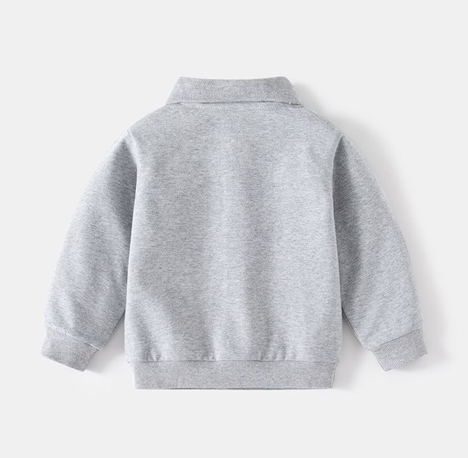翻領半開扣長袖套裝-帥氣線條-灰色