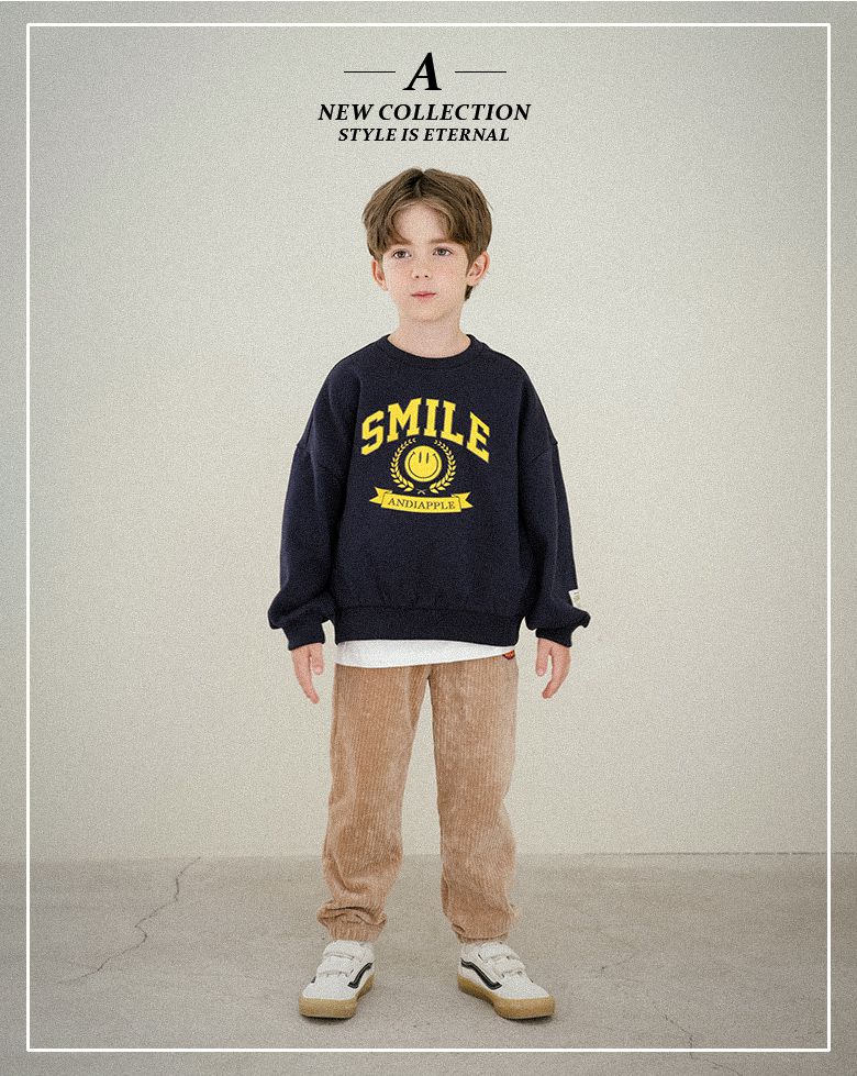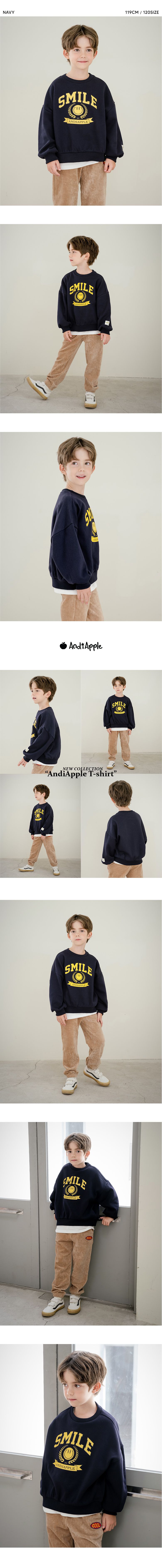 韓國 AndiApple - SMILE笑臉內刷毛長袖大學T