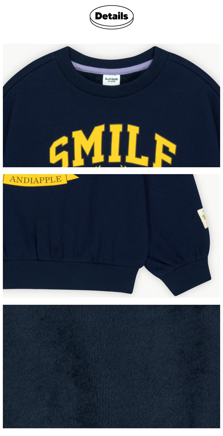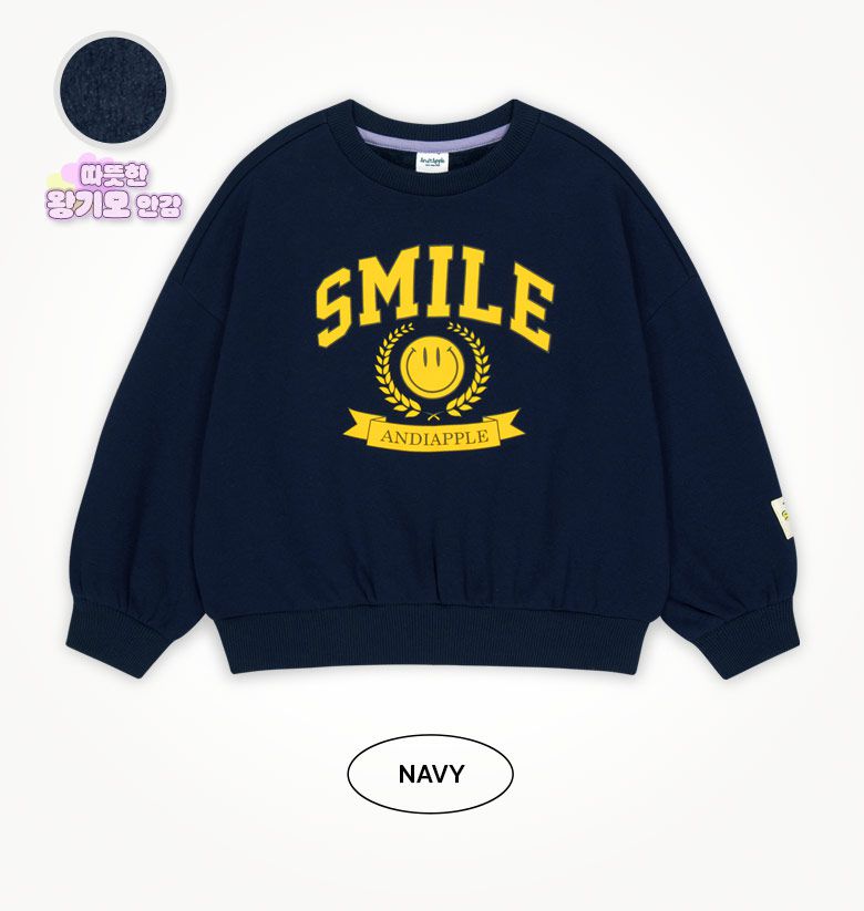 韓國 AndiApple - SMILE笑臉內刷毛長袖大學T-海軍藍