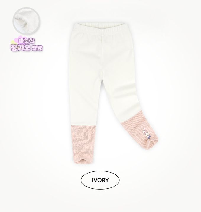 韓國 AndiApple - 鬆緊腰小兔子點綴內刷毛內搭褲-象牙白