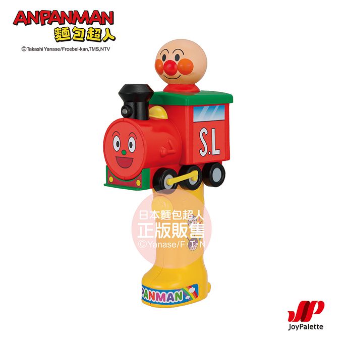 會發出蒸氣的麵包超人SL人,好驚奇!只要按下手把上按鈕,準備出發嚕!