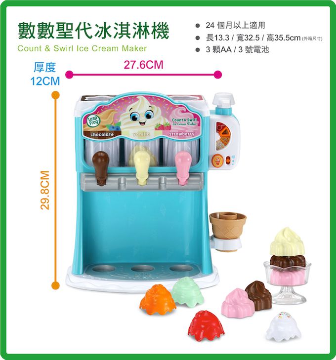 完成聖代冰淇淋,選擇喜愛糖漿並按壓