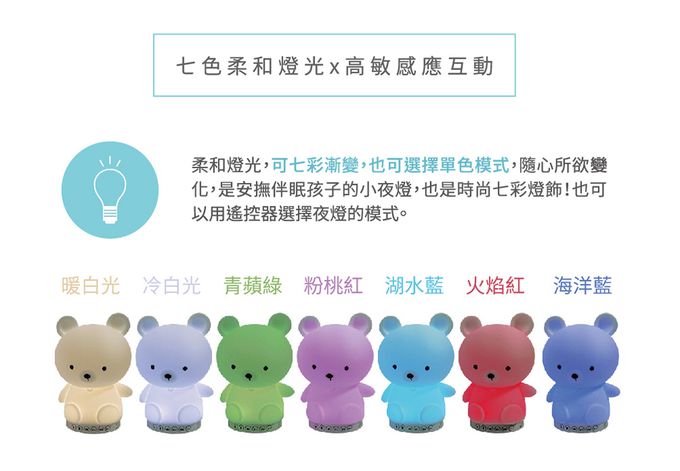 小孩很喜歡喔💕,睡前有芽比熊陪伴減少小孩怕黑的情緒,縮短入睡時間有感,不過希望下一代的芽比兔可以增加亮度調整模式,畢竟小孩是抱著睡著的,睡前燈光可以在暗一些,