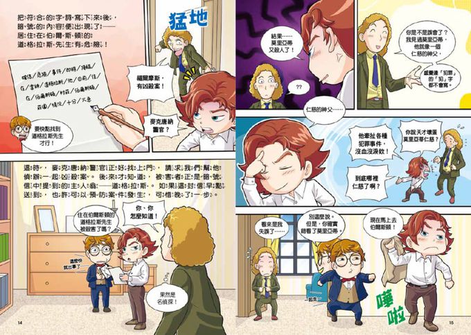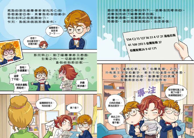 《科學神探福爾摩斯》系列忠於原著,用最低限度的文字和豐富多彩的圖畫,幫助孩子們在閱讀過程中全程保持興趣。此外,穿插在文中各處,讓讀者在事件現場親自尋找線索的「名偵探推理問答」單元,更讓孩子們可以在決定性的瞬間,利用自己的推理能力、觀察能力、解決問題能力,來尋找線索並進行推理問答。希望讓孩子們在閱讀過程中,體會到自己成為名偵探福爾摩斯,親自解決事件的愉快經驗。