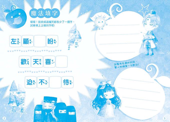 有注音,文字量不少,但因為字有稍大,加上可愛的插圖,所以其實很容易閱讀。每本書都附贈角色貼紙、明信片、成語魔咒簿等贈品,從拆開書就充滿驚喜!」