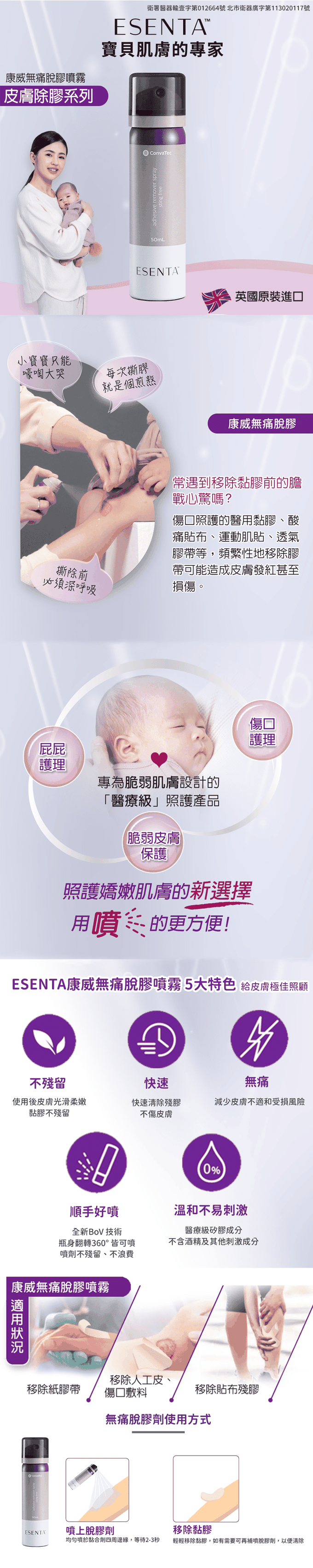 醫療器材許可證品名:"康威"無痛脫膠劑(未滅菌/滅菌)