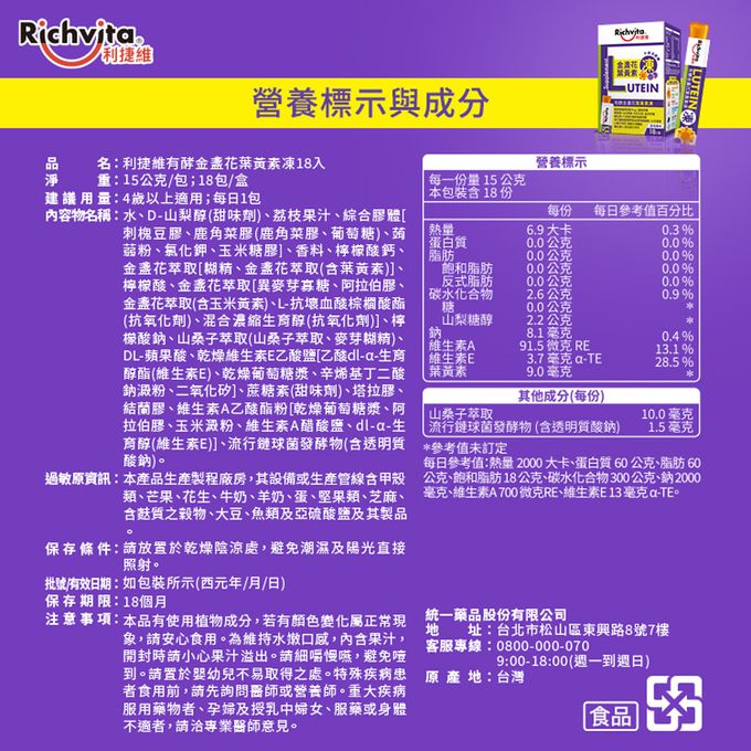 品名:有酵金盞花葉黃素凍(18條/盒)x2盒組