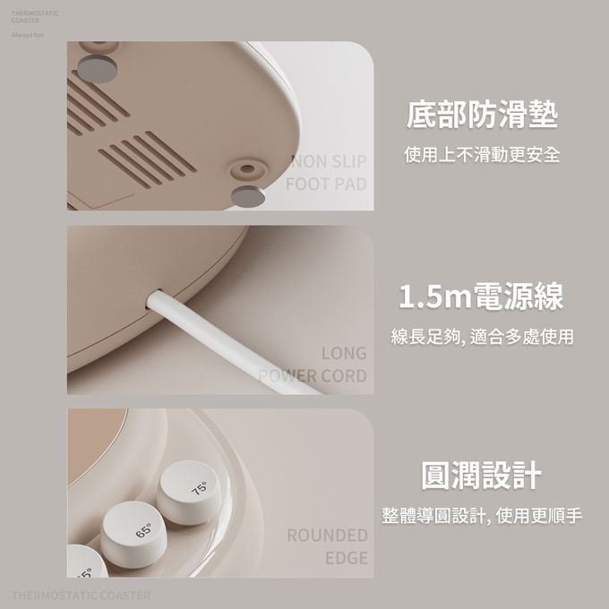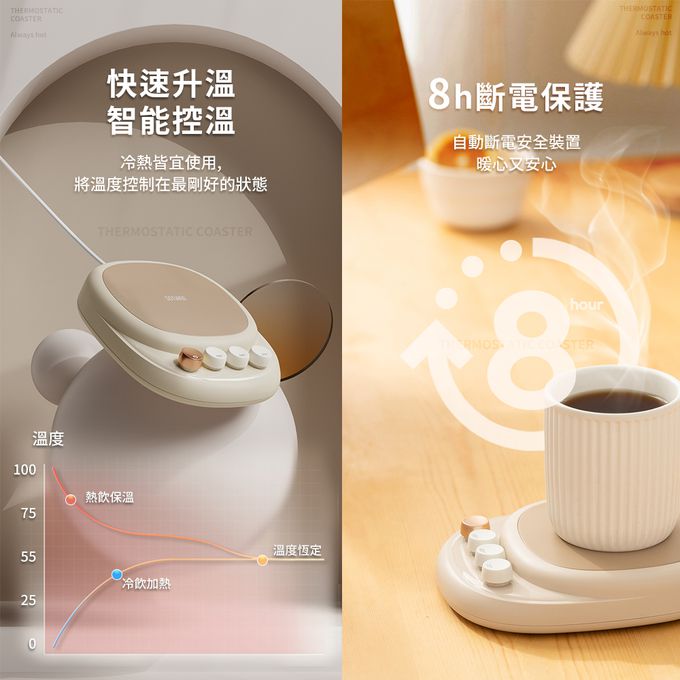 【特別說明】 使用本產品前,請先將發熱盤表面之貼紙移除!避免高溫產生貼紙加熱的氣味。 建議使用本店販售之”耐熱玻璃杯”導熱效果較佳,為避免危險請勿使用金屬、木質、無耐熱塑膠等材質之容器,陶瓷杯、雙層隔熱玻璃杯由於有隔熱作用或底座較厚的情形,導熱效果較差,請斟酌評估使用。 液體溫度與升溫速度會因不同室溫、容量、容器材質有所差異。 追求快速導熱,請使用本店販售之”耐熱玻璃杯”並請蓋上杯蓋,方可鎖住熱能達到期望溫度。
