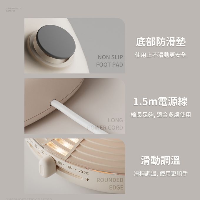 【特別說明】 使用本產品前,請先將發熱盤表面之貼紙移除!避免高溫產生貼紙加熱的氣味。 建議使用本店販售之”耐熱玻璃杯”導熱效果較佳,為避免危險請勿使用金屬、木質、無耐熱塑膠等材質之容器,陶瓷杯、雙層隔熱玻璃杯由於有隔熱作用或底座較厚的情形,導熱效果較差,請斟酌評估使用。 液體溫度與升溫速度會因不同室溫、容量、容器材質有所差異。 追求快速導熱,請使用本店販售之”耐熱玻璃杯”並請蓋上杯蓋,方可鎖住熱能達到期望溫度。